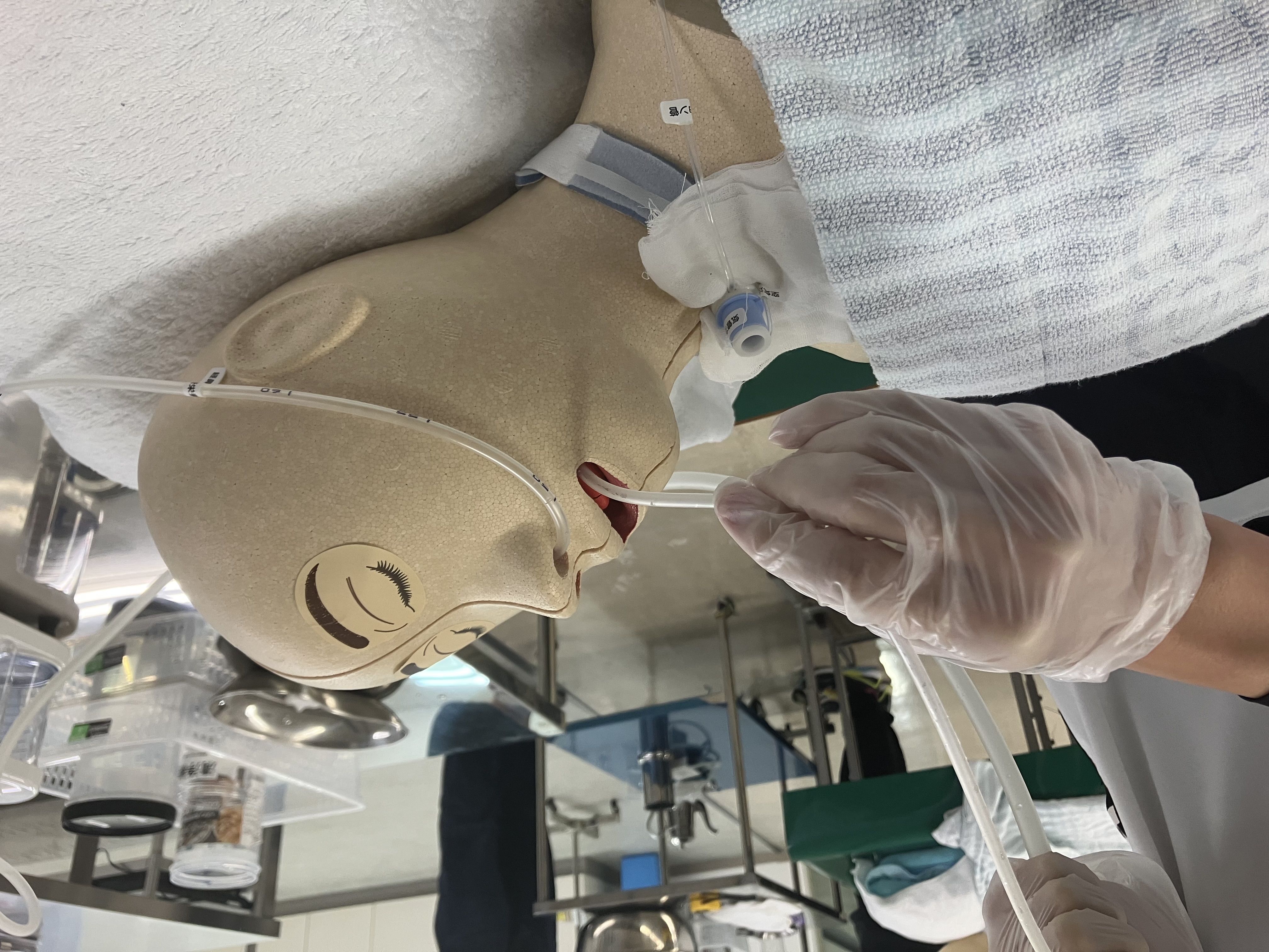 夏休みと実習期間も終わり、学校に賑わいが戻ってきた今日のこの頃...本日は、医療的ケアの演習を行いました。最初は器具の準備の段階で手間取っていた2年生も、後期に入ってからは手際よく準備し、演習に取り組んでいました。